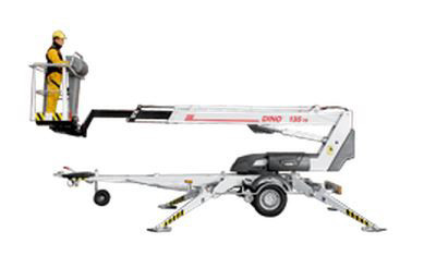 Dinolift 135TB är en släpvagnslift med 3 sektioners bom. Arbetshöjden är 13,5 meter.
