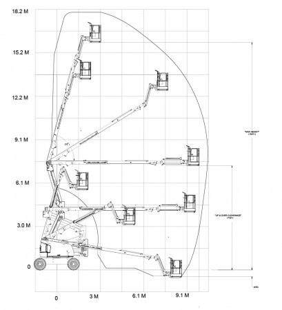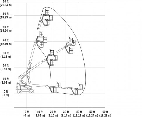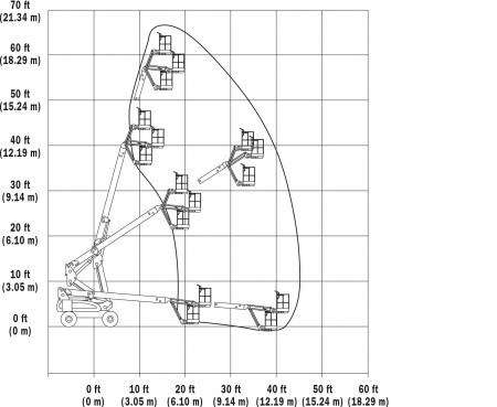 JLG’s 520AJ ledbomsliftar med vikarm har en bra förmåga att nå upp, över och förbi hinder och är en mycket mångsidig lifttyp. Liftarna är idealiska för att nå högt belägna arbetsställen som är svåra att komma åt med arbetsplattformar med rak bom. Maskinens svängtorn kan vridas 360 grader och den övre bommen kan höjas eller sänkas från nästan vertikalt läge till under horisontalt läge.