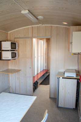 Vår personalvagnar ger bekvämlighet på arbetsplatsen och kan flyttas och placeras var du vill. De fungerar som ett tillfälligt utrymme där personalen kan ta en rast, fika eller använda som omklädningsrum. Ni kan hyra personalvagnar för upp till 4-6 personer. Vissa modeller är utrustade med omklädningrum och dusch möjligeter medan alla har matrum med kylskåp, mikrovågsugn eller värmeskåp och toalett med utvändig ingång. Personalvagnar är utmärkt för arbetsgivare som ska uppfylla anpassade regler och krav från facket och arbetsmiljöverket.