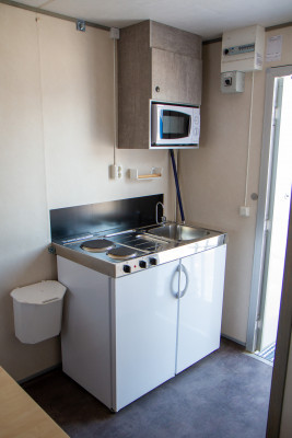 - Minikök med spis och tvättställ